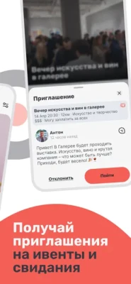Создавай свои события и участвуй в событиях других пользователей - используй возможности встретить новых людей, которые разделяют твои интересы.