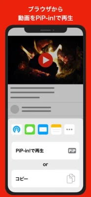 [Main functions] ● Picture-in-picture function -Play all videos in picture-in-picture! ● Function to create from URL -When you start the app from the URL that is playing the video, the video will be played in picture-in-picture! ● History function -Since the playback history remains, it is easy to look back at it later!