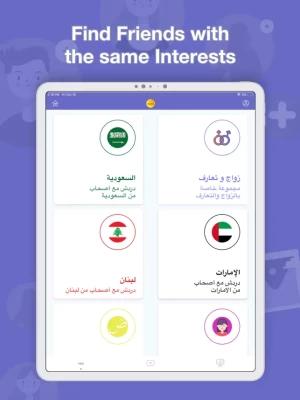 تعرف على أشخاص وأصدقاء جدد حول العالم بشكل آمن وسري ودون الحاجة للتسجيليتضمن التطبيق العديد من الغرف والمجموعات الجاهزة التي تحتوي على الكثير من المستخدمين حيث يمكنك التحدث بشكل جماعي في المجموعة.