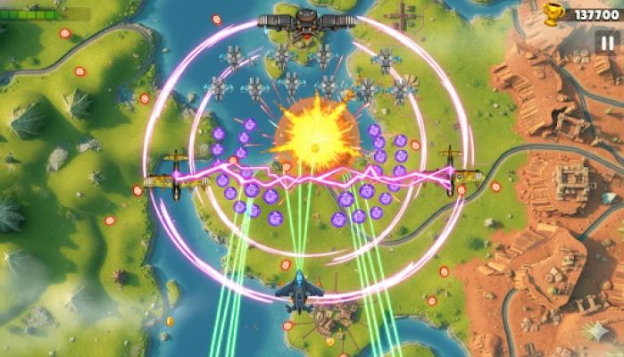 Các tính năng: - Có nhiều tàu chiến đấu khác nhau để lựa chọn! - Nhiệm vụ bắn súng đầy thử thách! - Những con trùm khổng lồ và hoành tráng. - Điều khiển đơn giản và dễ dàng. - Game bắn súng arcade cổ điển.