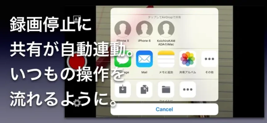 4.録画停止時にシームレスに外部アプリや各種SNSに連携可能。[非常に便利!]
