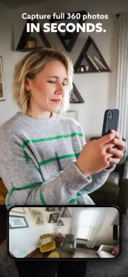 Capture full and immersive 360 photos instantly and easily. No hardware or fancy cameras required. Just snap a few photos of any space you love and get complete 360 photo spheres in seconds.