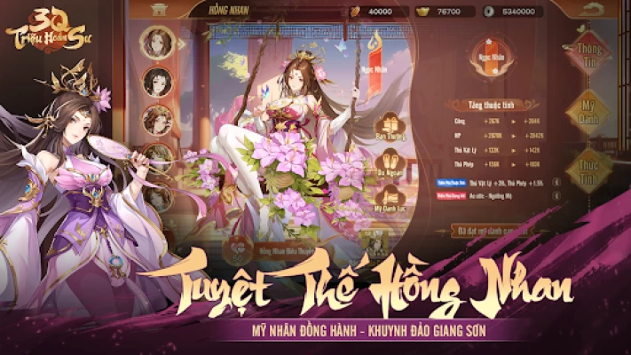 Game nổi bật với hệ thống Hồng Nhan đồng hành, xinh đẹp hấp dẫn giúp tăng cường sức mạnh và chiến lực. Người chơi hẹn hò, tặng quà và tương tác với các mỹ nhân nổi tiếng nhất trong lịch sử