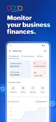 Elevate your business productivity with Zoho Books, the cloud accounting app designed to streamline your business finances, empowering you to handle invoicing securely, expenses, projects, bills, and more.