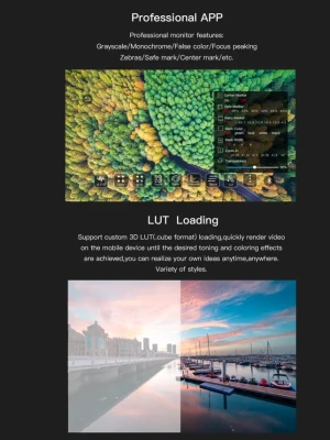 With the CineEye Wireless Video Transmitter, the App can turn phones and tablets into professional monitor. The functions of the App are:
