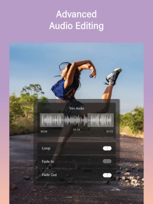 • Control original audio of the video by removing, trimming, or adjusting volume level.