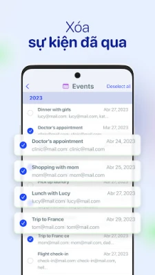• Giải phóng dung lượng trong lịch bằng cách xóa các sự kiện đã qua đang chiếm chỗ trong lịch trình của bạn