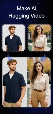 AI Hug Video Maker & kiss video allows you to easily create a warm hugging video using two individual photos. The AI Hugging concept brings your creative ideas to life, providing a comforting and impactful experience.