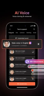 - 300+ AI voices with diverse languages, accents, and tones. Pick from various male/female voices and age groups to fit your preferences.