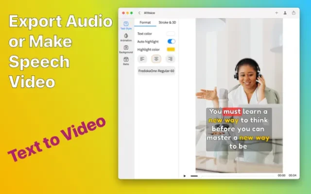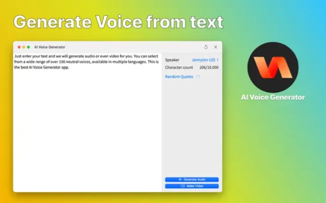 Instantly generate voice and video from text. Just input your text, the app will generate audio & video for you.AI Voice Generator & Text Video convert your written content into captivating audiovisual experiences! Whether you're a content creator, storyteller, or simply want to add a unique touch to your messages, this app is designed to bring your words to life like never before.The app uses cutting-edge artificial intelligence models to generate voices that are so realistic, you won't even recognize them as artificial voices.