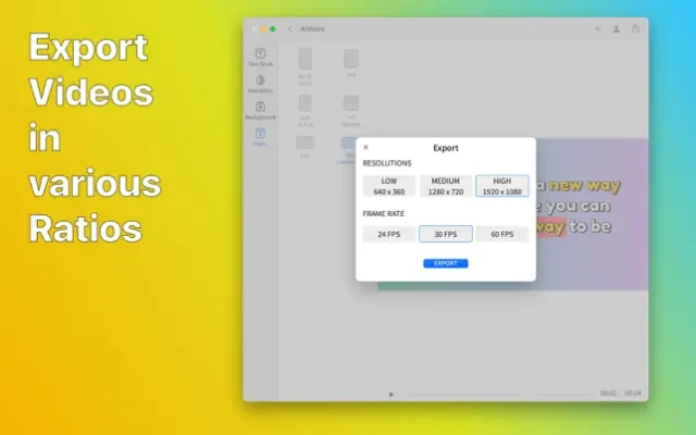 - High resolution and up-to 60 FPS video exporting.
