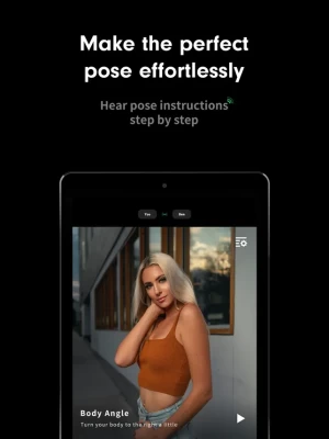 Guided posing steps - Focus on the face, the arms, and the legs, one step at a time. AiryCam intelligently zooms in on each body area to make sure your pose is as close to your expectation as possible.