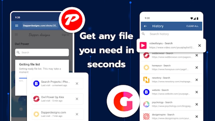 The browser downloader Get Them All app comes with a fully integrated web browser that makes browsing and downloading files a breeze. When you visit a website, browser and documents manager automatically detects all the downloadable files on the page, so you can see them all in one place. This feature makes it easy to find what you're looking for and download it quickly.