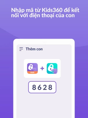 2. Cài đặt ứng dụng “Kids360” trên điện thoại của con bạn và nhập mã liên kết với điện thoại của cha mẹ;