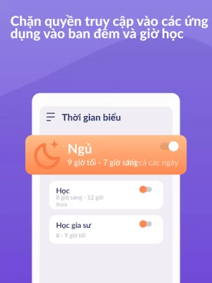 Lịch trình - đặt thời gian đi học và nghỉ ngơi vào buổi tối: con sẽ không sử dụng được trò chơi, mạng xã hội và ứng dụng giải trí trong thời gian đã chỉ định