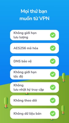 Chúng tôi mã hóa mọi kết nối với AES256 và máy chủ của chúng tôi không có nhật ký. Chúng tôi cũng bảo mật các yêu cầu DNS để giữ cho bạn an toàn. Chúng tôi có bảo vệ chống rò rỉ IP để bạn có thể thay đổi địa chỉ IP một cách an toàn.