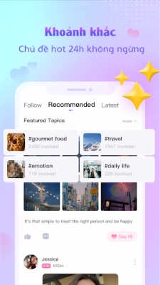 Dùng giọng nói để bày tỏ lòng mình, gặp người lạ hiểu bạn hơn, Gọi vioce có chất lượng cực cao, bật tắt âm thanh tùy thích! Phòng trò chuyện 24 giờ đang chờ bạn tham gia bất cứ lúc nào! Hàng trăm người bạn luôn trực tuyến tại App!