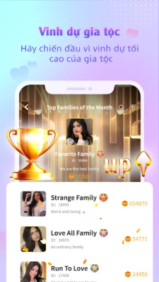 Bạn có thể tạo phòng của mình bất cứ lúc nào,Hãy mời người thân và bạn bè của bạn tham gia tiệc phòng của bạn để tổ chức các bữa tiệc trực tuyến, tham gia các hoạt động của bạn yêu thích, các cuộc thi ca hát, PK tài năng, cuộc thi sắc đẹp, v.v. Nhiều hoạt động khác đang chờ bạn tham gia, hãy tận hưởng cuộc sống và niềm vui.