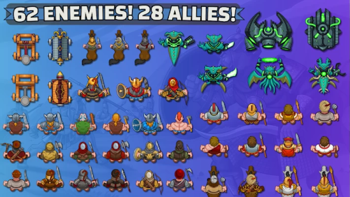 DEEP STRATEGY AND ENDLESS VARIETY Strategize with 26 distinct towers and a multitude of upgrades in Ancient Allies Tower Defense. Each player's journey is unique, thanks to the game's extensive customization options. With 125 maps, 62 enemy types including 15 bosses, and 28 allied units, every battle offers new strategic challenges. Towers can be upgraded to enhance damage, fire rate, range, and more, adding layers of strategy to your defense. Each tower has a "super upgrade" that significantly changes its game mechanics.