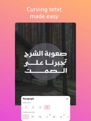 • امكانية الكتابة على لوحة ذات خلفية ملونة او صور جاهزة او اي صورة من مكتبة الصور.