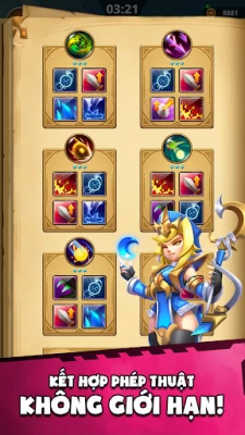 Trong cuộc chiến, hãy khám phá những nguyên liệu bí ẩn để tạo và hình thành phép thuật của bạn. Mỗi nguyên liệu đều là một sợi chỉ phép thuật, đang chờ để được dệt vào tấm thảm chiến lược của bạn. Với hơn 3 triệu kết hợp phép thuật tùy chọn trong tay, sự sáng tạo của bạn không có ranh giới.