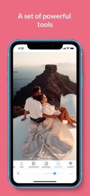 And of course a set of tools and adjustments: crop, brightness, contrast, highlights, shadows, saturation, temperature, hue, clarity, sharpness, grain and tone.