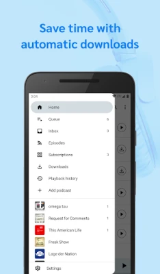 Download, stream or queue episodes and enjoy them the way you like with adjustable playback speeds, chapter support and a sleep timer.