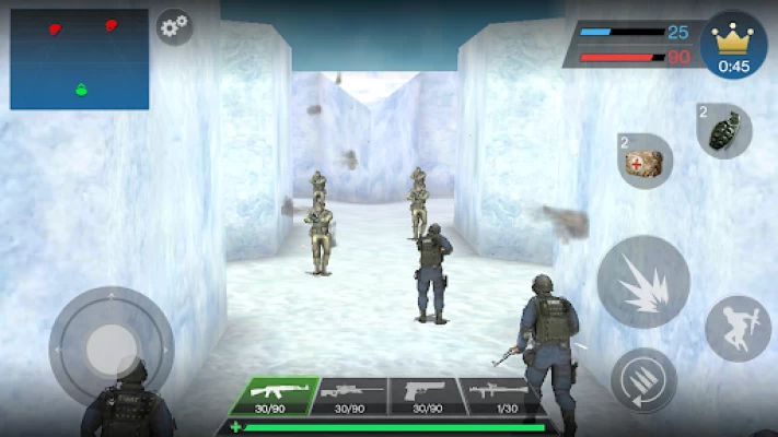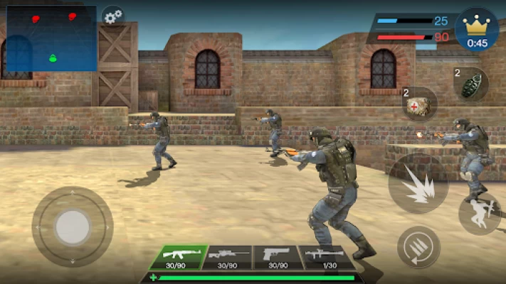 Play the role of police, special forces or robbers and show your fighting skills in the Android first person shooter game.