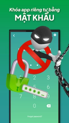 - Trang bị câu hỏi bảo mật hai lớp, khóa app riêng tư, bảo vệ thông tin cá nhân và dữ liệu quan trọng, ngăn chặn hành vi trộm cắp thông tin, kiểm soát quyền truy cập vào ứng dụng bằng cách khóa ứng dụng bằng mật khẩu.