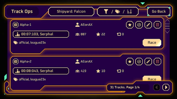 • Official rankings for every track and spaceship