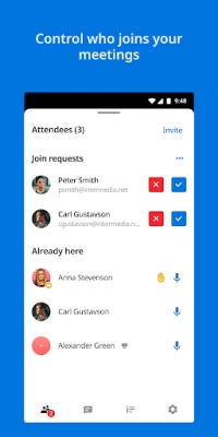 audio quality, screen share viewing capabilities, and attendee controls in the palm of your hand.
