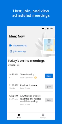 AnyMeeting Mobile App allows you to join or host online meetings with crystal clear HD video and