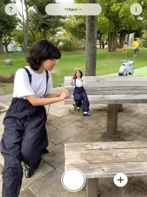 "ARama!" is an AR camera application that allows you to play by Copy and Paste of human body. Let's multiply your or your friends' bodies and play freely in the AR space!
