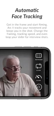 Automatic Face Tracking - Get in the frame and start filming. Arc II tracks your movement and keeps you in the shot. Change the framing, tracking speed, and even loop your slider for interview shots. Note: this mode requires you to mount your phone to your camera. See our website for the Camera Phone Mount.