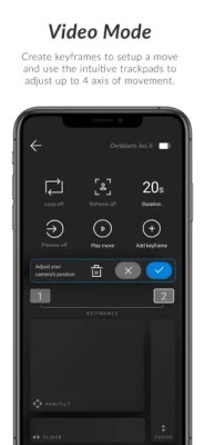 Video Mode - Use the intuitive trackpads to setup your move. Create keyframes to adjust up to 4 axis of movement.