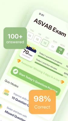 ASVAB Practice Test 2026 is a test preparation app that will help you pass the Armed Services Vocational Aptitude Battery (ASVAB) Test with a high score and get your ticket to a military career in the United States.
