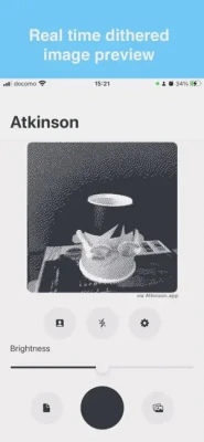 # Features - process with Atkinson dithering algorithm - square photo - rounded corner (you can turn on/off) - white border - realtime preview