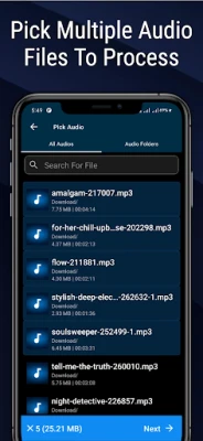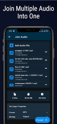 The audio joiner inside the app helps you to join multiple audio files into a single audio file. You can join any number of mp3 file into a single file. Audio joiner also allows you to save the output of mp3 joiner at popular audio formats.