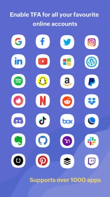 - Identify your 2FA accounts easily by associating them with their brand logos.