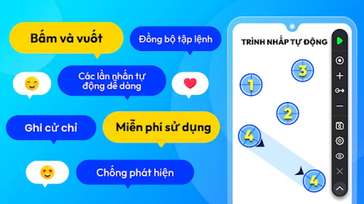 Với ứng dụng bất kỳ, khoảng thời gian bất kỳ, vị trí bất kỳ, khi bạn chỉ định, Tự động nhấp có thể thực hiện các lần nhấp hoặc trượt nhanh lặp lại mà KHÔNG CẦN QUYỀN ROOT!