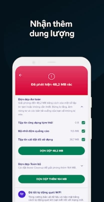 ■ Dọn dẹp rác: Dọn dẹp tức thì những dữ liệu không cần thiết, tập tin rác, ảnh nhỏ trong thư viện, tập tin cài đặt và tập tin còn sót lại để giúp bạn có thêm dung lượng trống.