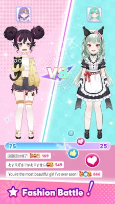 Tham gia các cuộc thi thời trang theo chủ đề và thể hiện gu thẩm mỹ của bạn! Dù là phong cách Campus trẻ trung, Lễ Giáng Sinh lấp lánh, hay Lễ cưới lãng mạn, mỗi chủ đề đều thách thức bạn tạo nên bộ trang phục ấn tượng nhất. Thắng trong các cuộc chiến PK sẽ nhận được tim, dùng để mở khóa các set độc quyền mới.