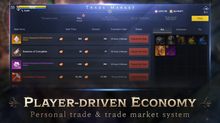 Become stronger by freely trading obtained loot, power of god and even characters.