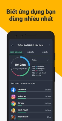 ✔ Quyền Ứng dụng: xem thông tin chi tiết về cấp độ quyền yêu cầu của ứng dụng đã cài đặt