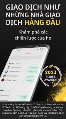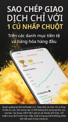 Ứng dụng Giao Dịch Sao Chép Axi được cung cấp trong kết hợp với London & Eastern LLP. Sao chép các nhà giao dịch khác mang theo các rủi ro tự nhiên, như khả năng sao chép các quyết định giao dịch kém chất lượng hoặc sao chép các nhà giao dịch có mục tiêu, tình hình tài chính và nhu cầu khác biệt so với của bạn. Các tài khoản có sẵn để sao chép chưa được Axi phê duyệt hoặc ủy quyền. Sao chép giao dịch không cấu thành lời khuyên đầu tư.