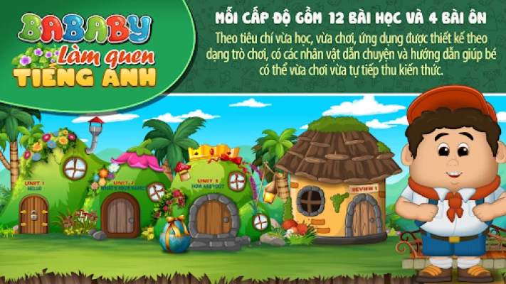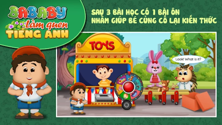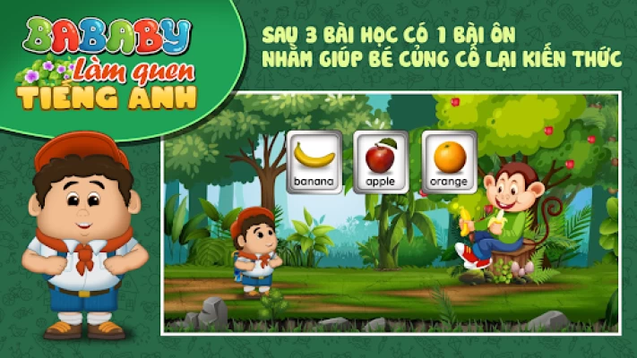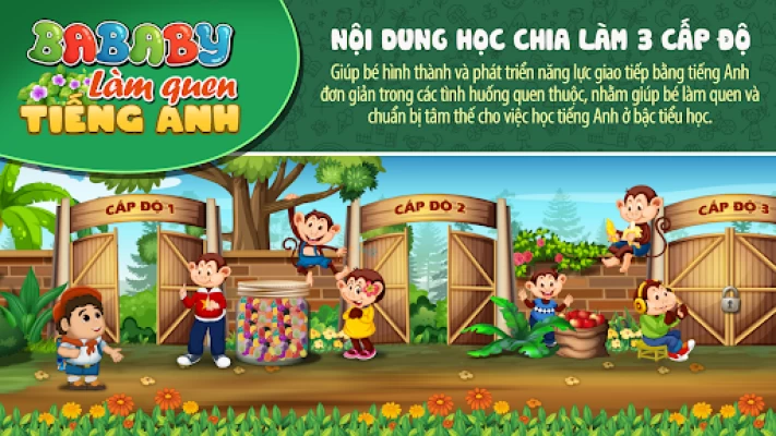 Ứng dụng BABABY — LÀM QUEN TIẾNG ANH dành cho lứa tuổi từ mẫu giáo đến lứa tuổi tiểu học chưa biết tiếng Anh, giúp bé hình thành và phát triển năng lực giao tiếp bằng tiếng Anh đơn giản trong các tình huống quen thuộc, nhằm giúp bé làm quen và chuẩn bị tâm thế cho việc học tiếng Anh ở bậc tiểu học.