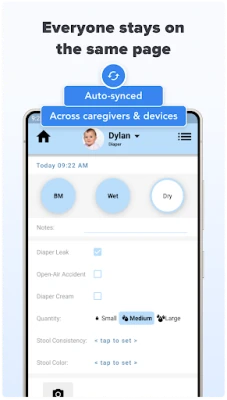 - Monitor bottle feeds with quantity and timing