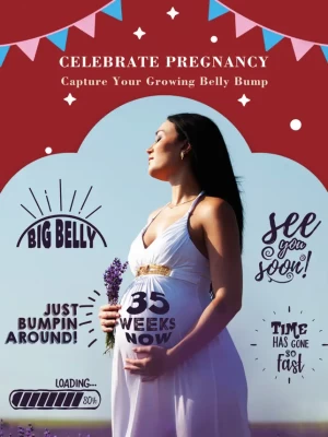 - Mark your pregnancy, belly bump and baby's life achievements with 2000+ artworks and stickers organized in categories (Fun, Pregnancy Milestones, Humor, First, Birthday, Big Kids Doodles and Many More)