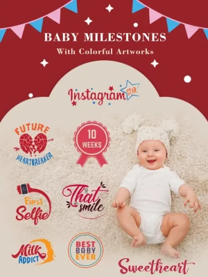2000+ ADORABLE ARTWORKS AND STICKERS: Choose from 2000+ stunning hand crafted colorful artwork overlays to perfectly mark your growing baby bump, baby's developmental milestones, big kid mess ups and deliciously sweet moments. Categories include Pregnancy Milestones, Humor, Fun, Big Kids, Giggles, Birth Announcements, Baby Milestones, Fancy Dates, Holidays, Vacation, Twins and Many More! Have a special occasion? Enjoy our seasonal and holiday sticker packs!