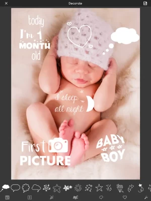 You can create Baby Art with many wonderful style and baby sticker, with text and sticker cute, realistic.